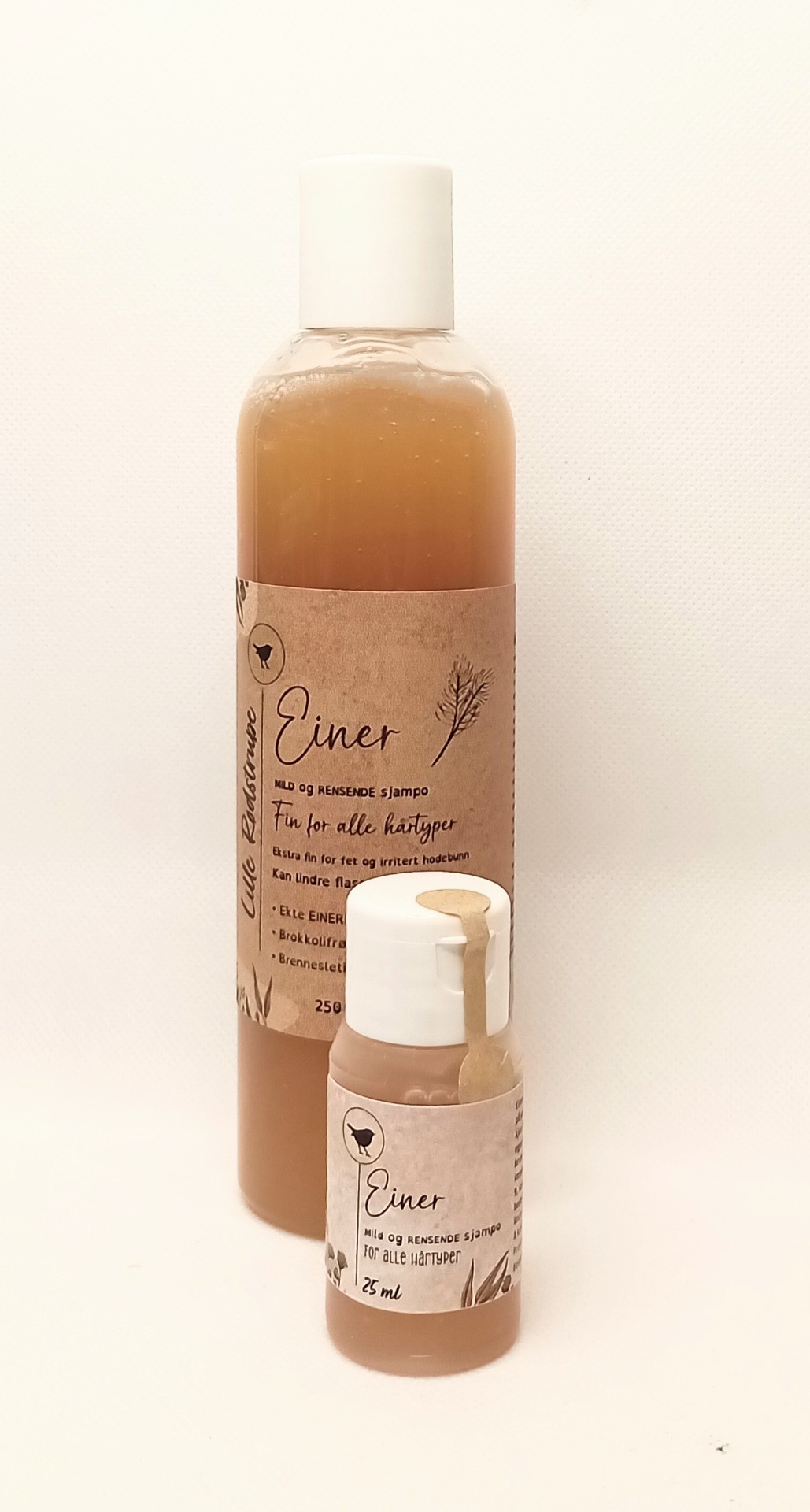 Vi har selvfølgelig både einerlågsjampo og einer såpebar i nettbutikken! Begge deler er utmerket pleie for både hud og hår, særlig hvis du lett får kløe, eksem, flass, fett hår og irritert hodebunn.